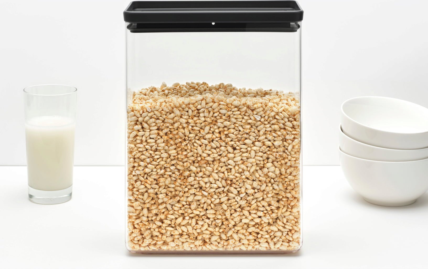 Keep your pantry and kitchen shelves tidy and organised with the transparent plastic containers from the Tasty+ series by Brabantia. They are available in different sizes and are stackable to save space. The contents of the see-through containers are visible at a glance and they keep food reliably fresh for longer.