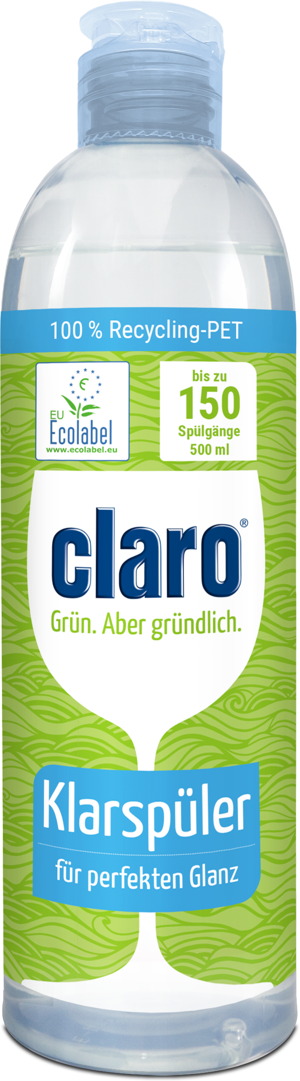 The ECO rinse aid from claro contains biodegradable ingredients and rounds off the dishwashing process perfectly! Detergent substances ensure that dishes dry faster, while the hygienic freshness and shine formula gives the dishes a radiant finish. The rinse aid also prevents annoying water and limescale stains. The bottle is made from 100% recycled PET and is easy to fill thanks to the practical comfort dosage.