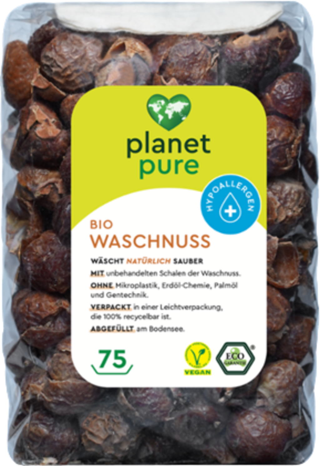 Natural, untreated and wild-grown in India, soapnuts release natural substances in water (from 30°C) to effectively removes stains and dirt particles. Their natural composition provides a gentle cleaning effect. They are hypoallergenic and well-tolerated by the skin.